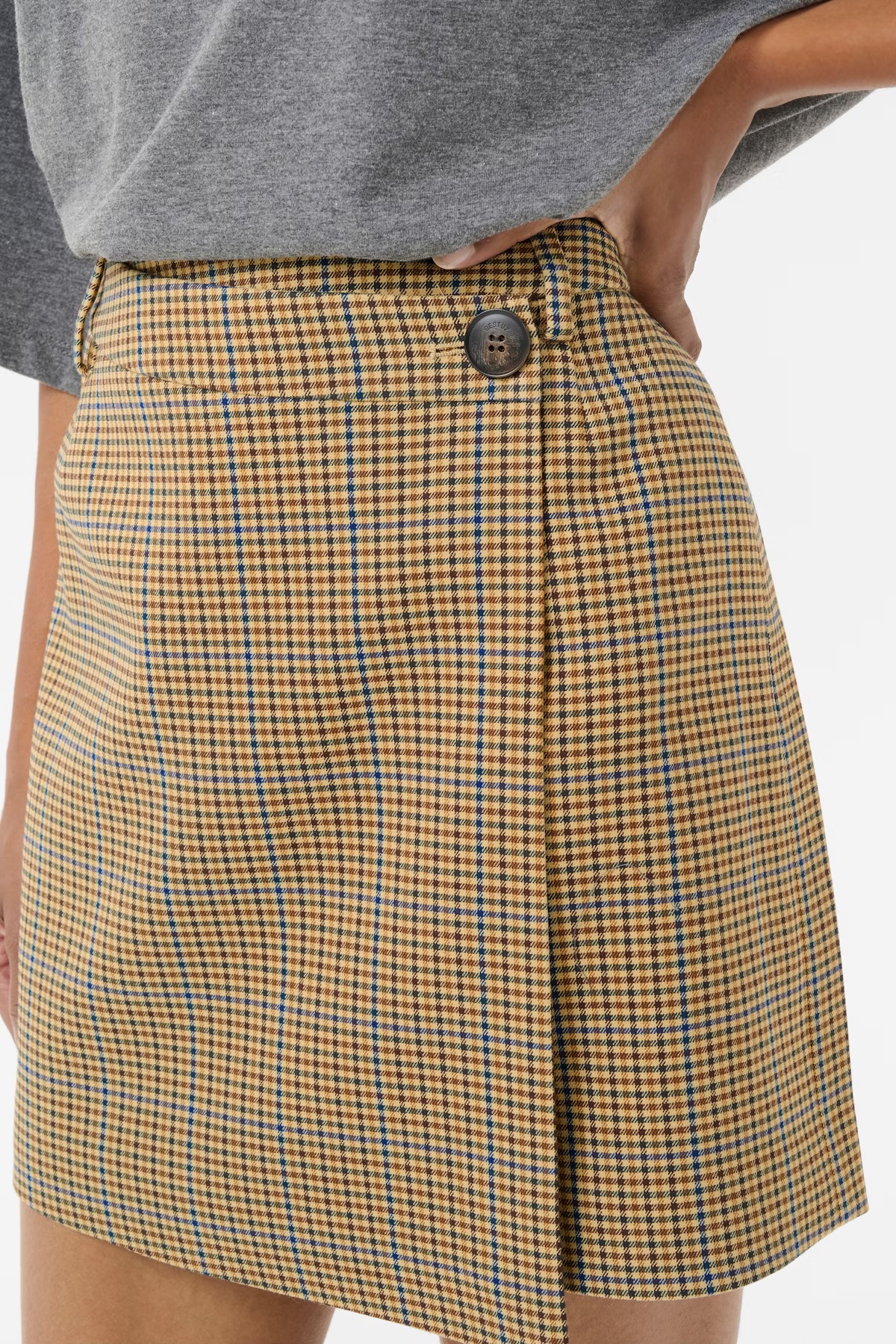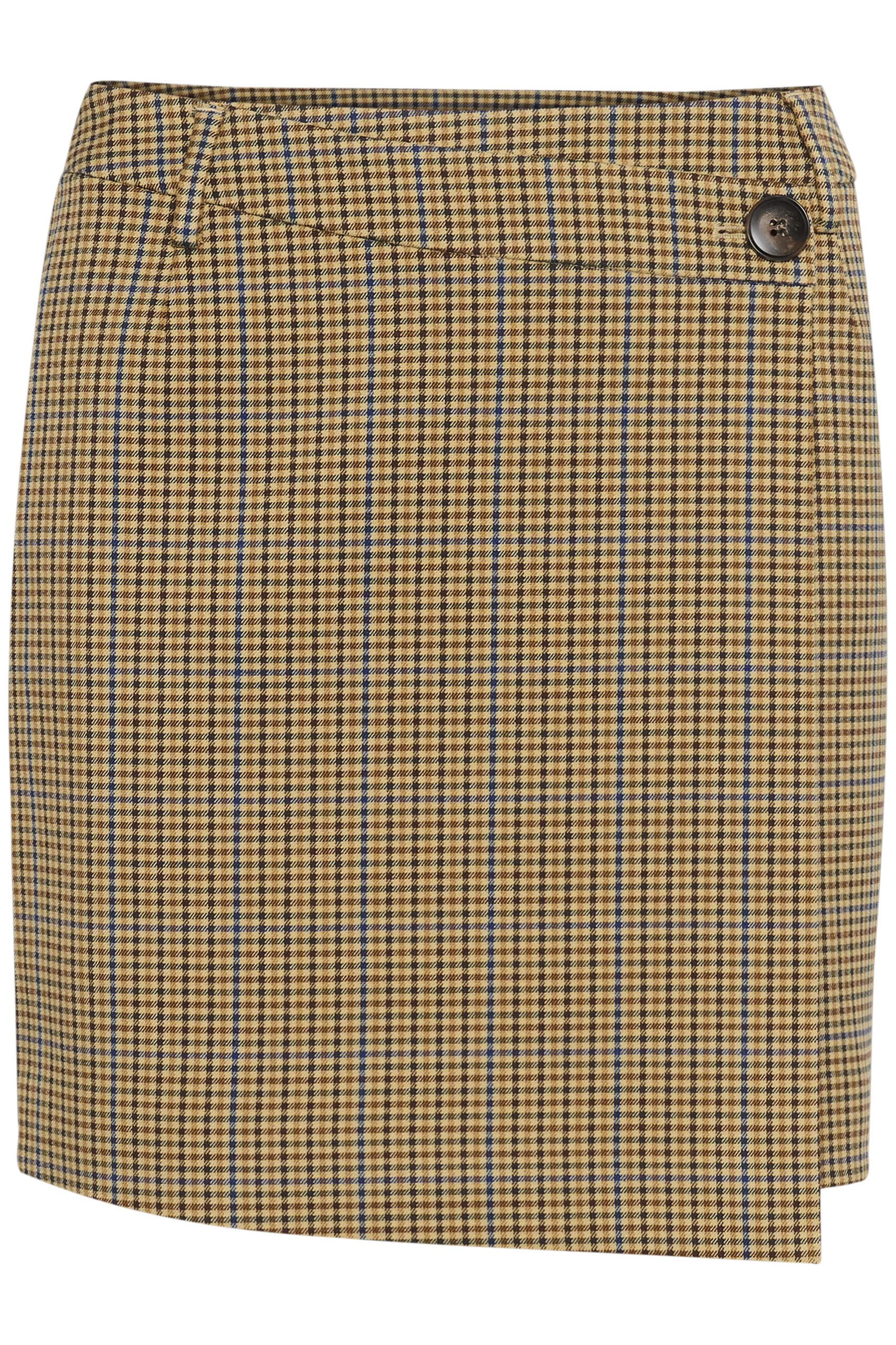 Mini rok met asymmetrische flap aan de voorkant, getailleerde taille en een strak gestructureerd silhouet.