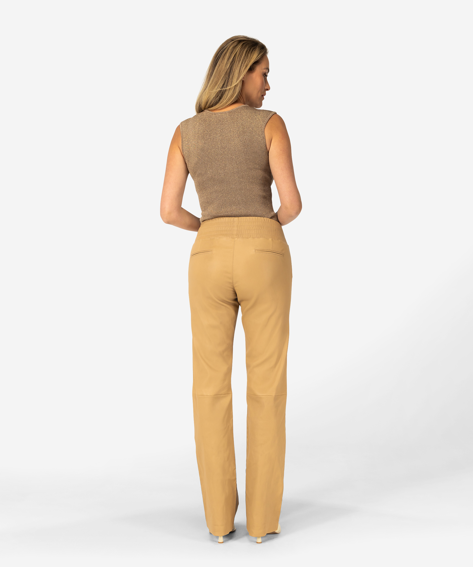 Lederen broek met stretch verhoogde elastiek band, rechte pijpen en regular fit.
